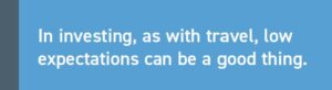 In investing, as with travel, low expectations can be a good thing. Look back at 2023 and 2024, when most of Wall Street kept saying that recession was right around the corner. The so-called yield curve had inverted, and groupthink said that must mean recession. For those who speak English and not invest-speak, the yield curve is the line that forms when one plots the various interest rates of U.S. Treasury obligations of different maturities.